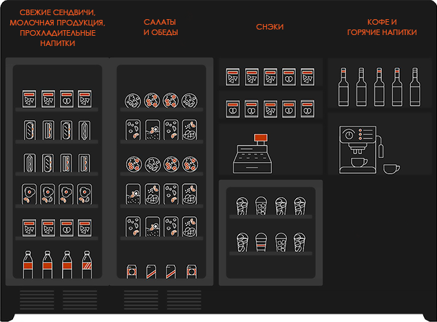 Киоск находится максимально близко к покупателю и доступен круглосуточно, не выходя из офиса.